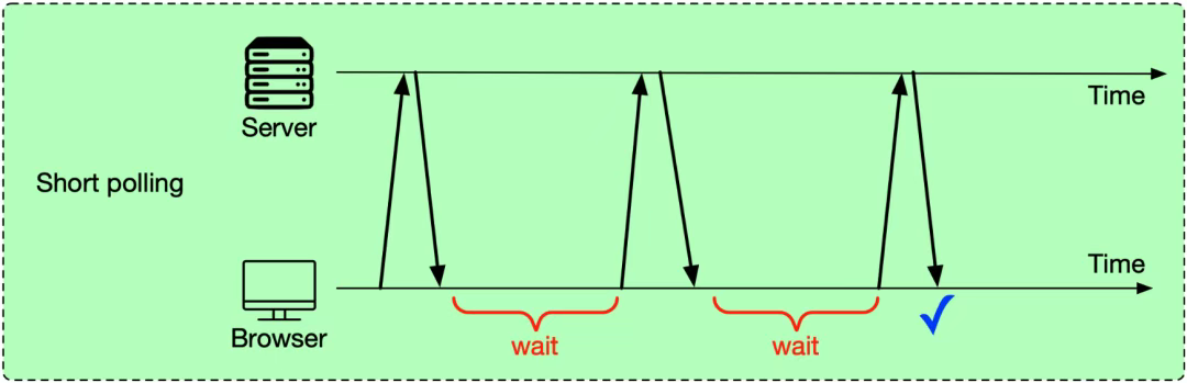 这这种方式实现起来非常简单可靠,但是频繁的调用后端接口,会对后端性能会有影响(主要是 CPU)。同时,因为依赖轮询间隔,页面数据变化有延迟,用户体验并不算太好。