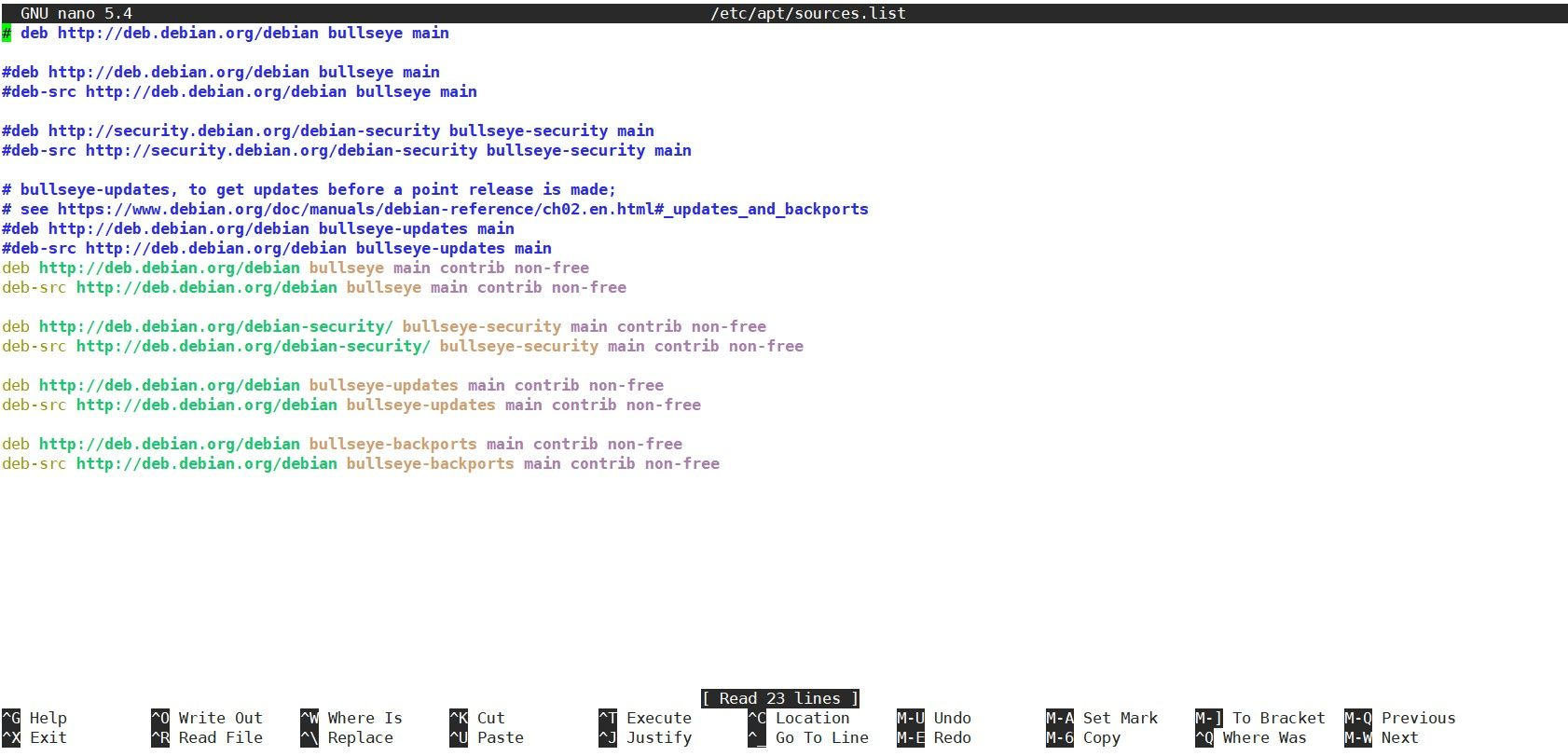 deb http://deb.debian.org/debian bullseye main contrib non-free