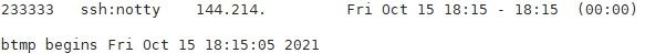SSH的配置文件在/etc/ssh/sshd_config中,是一个纯文本文件,可以使用nano或者vim打开和编辑。打开文件后,在前几行就能看到#Port 22字样,这个代表使用了默认的22端口作为SSH连接使用。因为大家都在使用22端口,所以会有一些扫描机器使用弱密码不断尝试登录,使用lastb命令可以查看登录失败的记录,如下图。233333是尝试登录的账号,144.214.xxx.xxx是发起者的IP,最后面是尝试登录的时间。