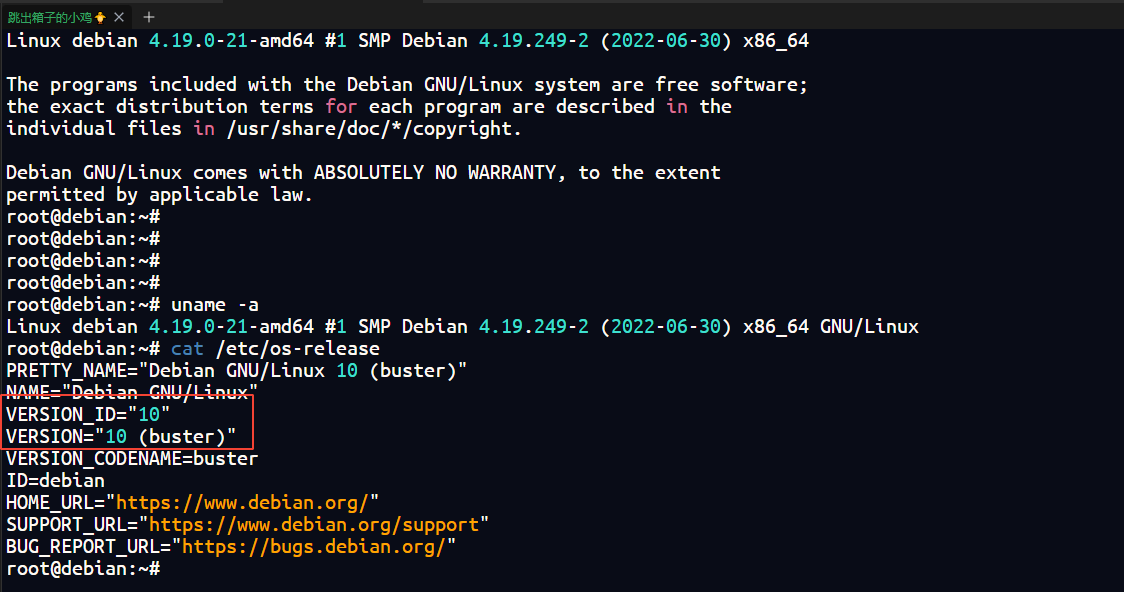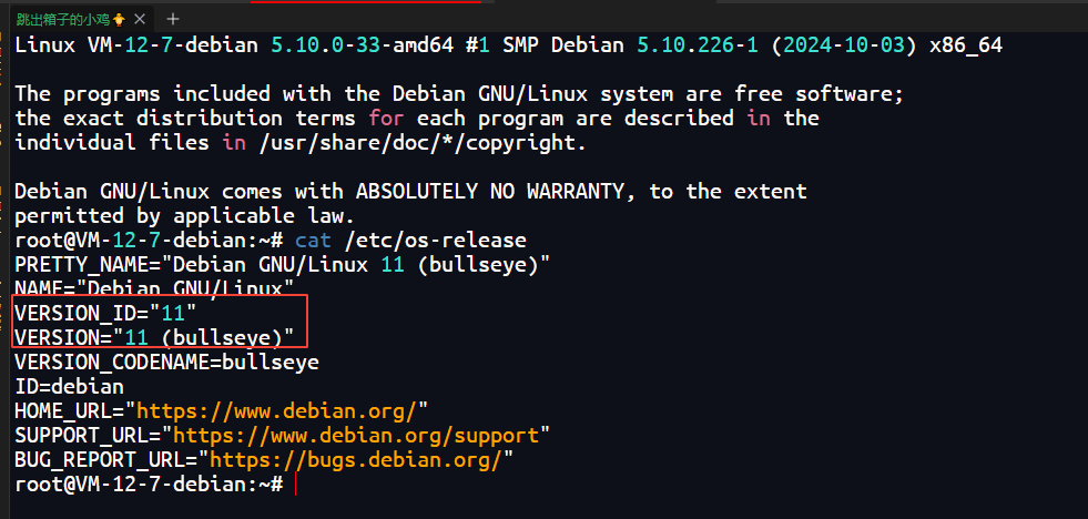 大概等了15~30分钟左右,再次连接,登陆成功!输入cat /etc/os-release查看版本